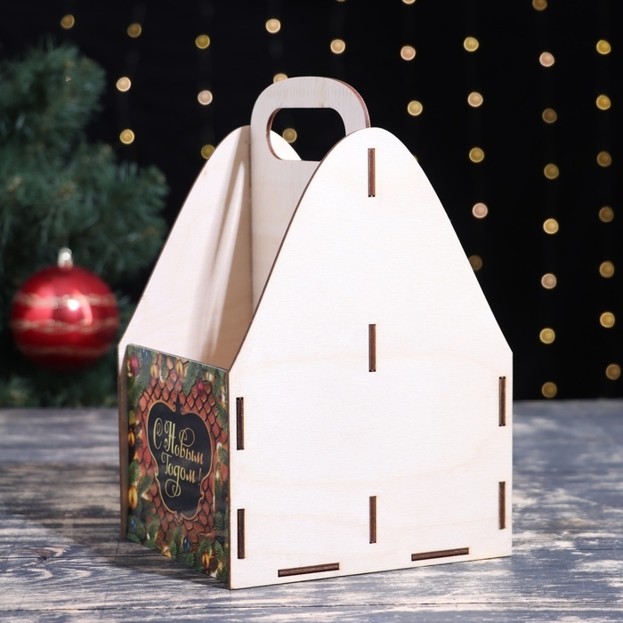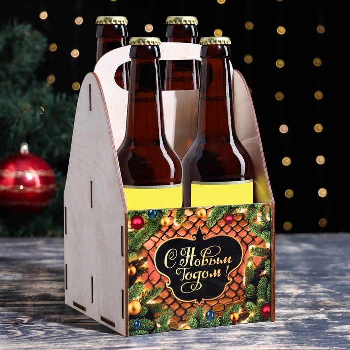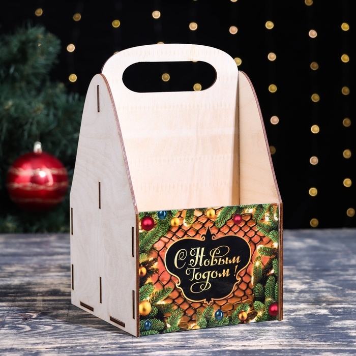 Ящик для пива "С Новым Годом!" еловые ветки, 15 х 15 х 25 см