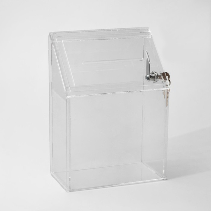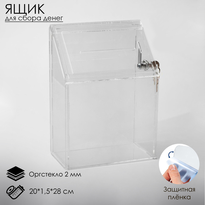 Ящик для сбора денег с врезным замком, 20×1,5×28 см, оргстекло 2 мм, В ЗАЩИТНОЙ ПЛЁНКЕ