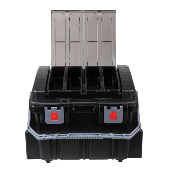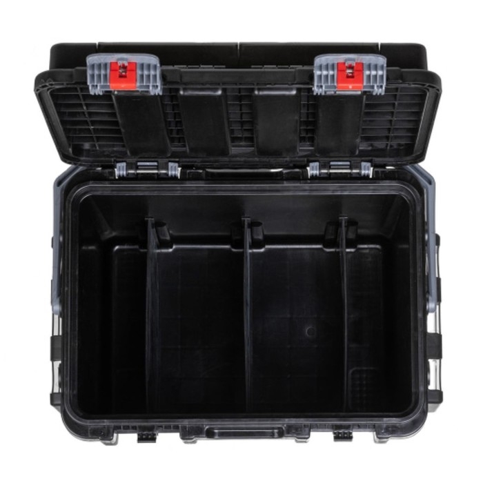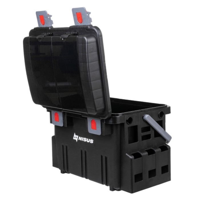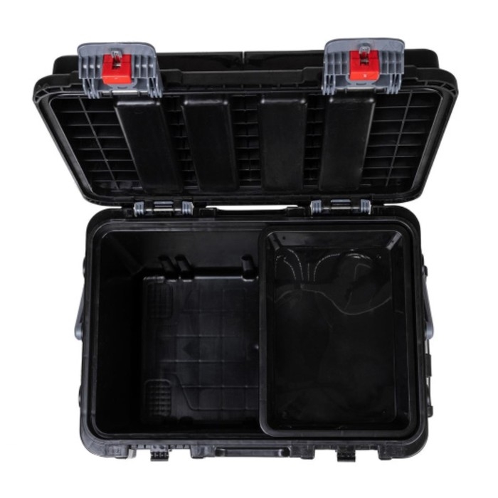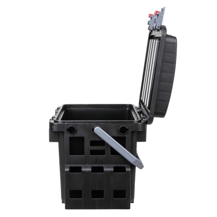 Надежность хранения снастей обеспечивают защелки, исключающие самопроизвольное открывание крышки. Основное отделение укомплектовано тремя съемными перегородками, позволяющими сформировать четыре отсека. Это дает возможность организовать систему хранения так, чтобы нужную вещь не приходилось долго искать. Крышку можно открыть с любой стороны, а при необходимости — снять с корпуса. На ней расположены отсеки для хранения рыболовных мелочей.
