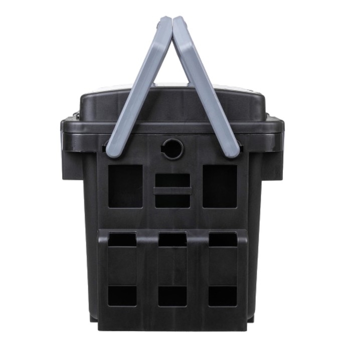 Ящик можно переносить в руках и на плече. В первом случае используются большие пластиковые ручки. При желании рыболов может установить только одну из них. При длительных переходах удобнее пользоваться наплечным ремнем. Он дополнен прорезиненной вставкой, благодаря которой ящик не давит на плечо. Длину ремня можно отрегулировать под свой рост. Рыболов имеет возможность расширить функциональность ящика, дополнив его навесными держателями, для фиксации которых предусмотрены специальные крепления.