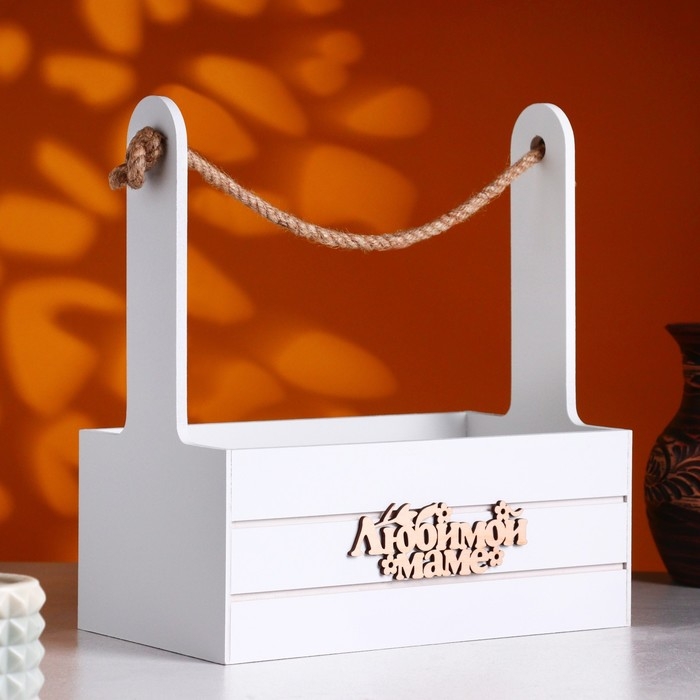 Ящик - кашпо деревянный 25х15х30 "Любимой Маме" Белый