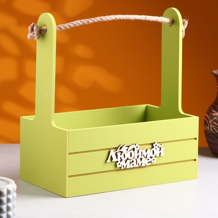 Ящик - кашпо деревянный 25х15х30 "Любимой Маме" Фисташковый