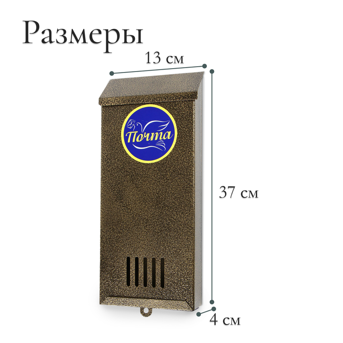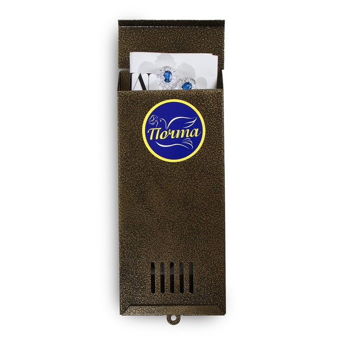 Ящик почтовый без замка (с петлёй), вертикальный, «Узкий», бронзовый