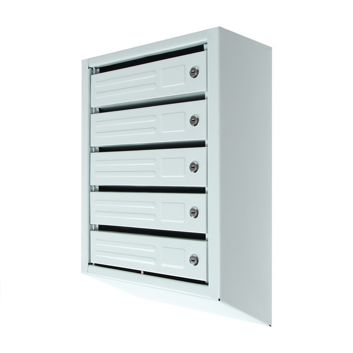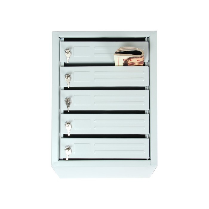 Ящик почтовый многосекционный, 5 секций, с задней стенкой, серый, дверка МИКС