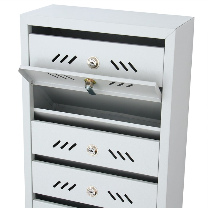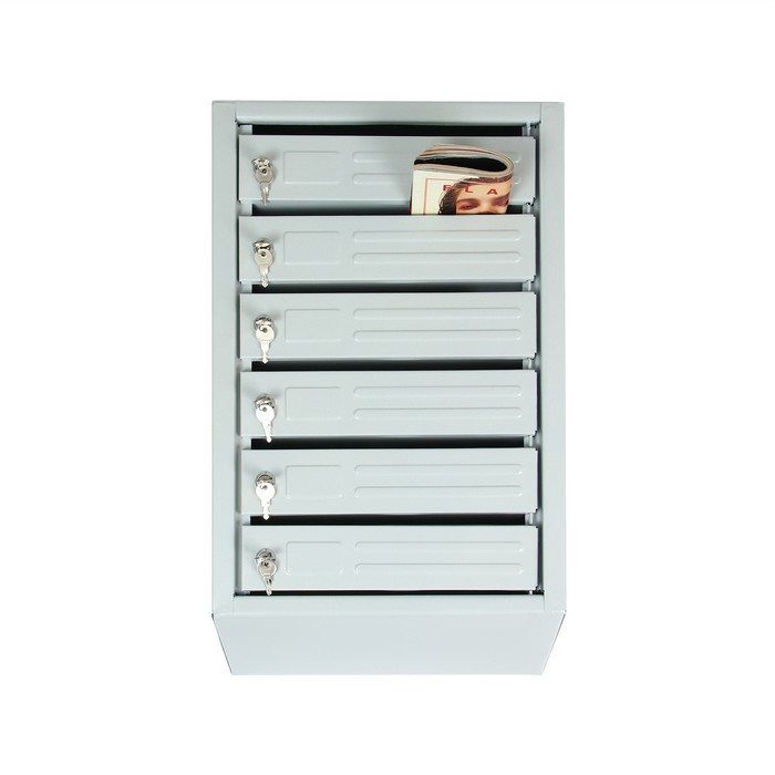 Ящик почтовый многосекционный, 6 секций, с задней стенкой, серый, дверка МИКС