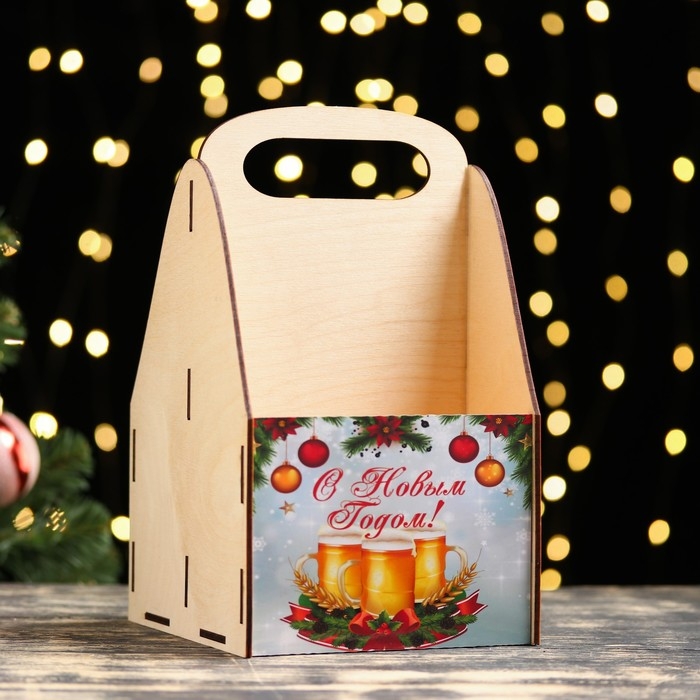 Ящик под пиво "С Новым годом!" кружки пива, снежинки