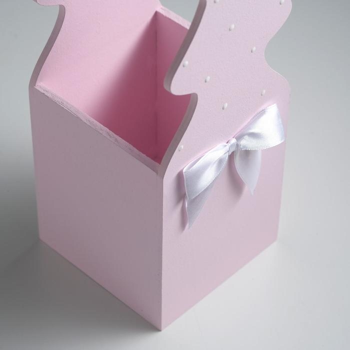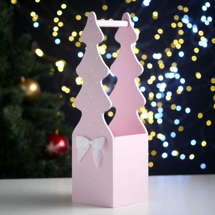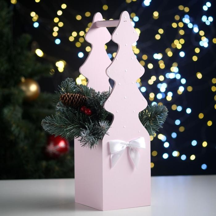 Ящик подарочный "Ёлка" (12*12*42) Дерево, МДФ 6 мм, окрашен., оформл., Розовый пастель-белый