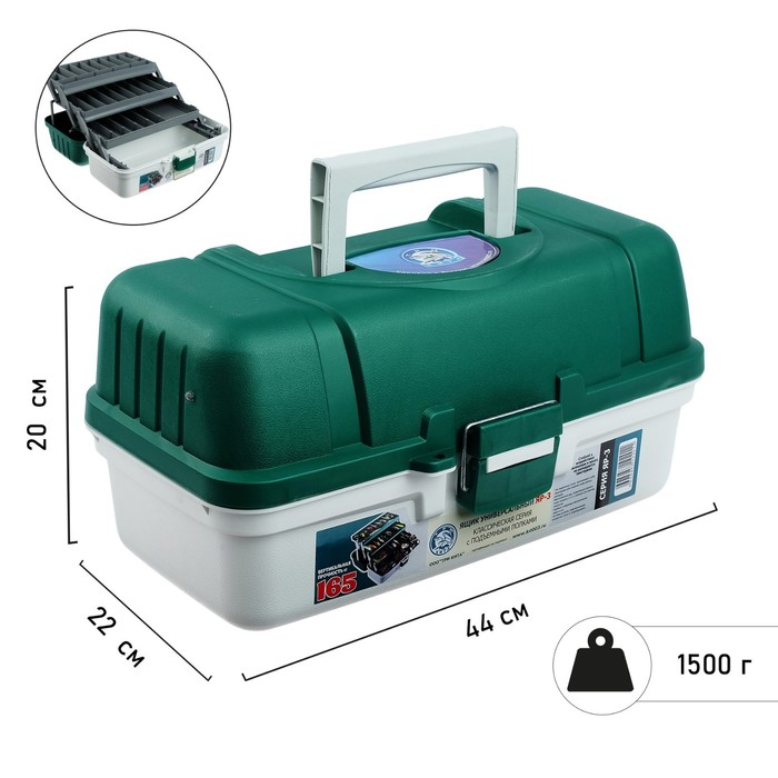 Ящик рыболовный ЯР-3, размер 44 х 22 х 20 см, 3 лотка