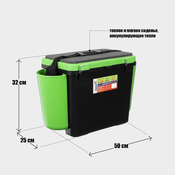 Ящик зимний Helios FishBox 19 л, односекционный, цвет зеленый