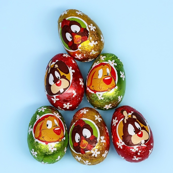 Шоколадные яйца "Животные" в яркой и красочной упаковке принесут радость и удовольствие всем любителям сладостей. Необычный дизайн этой классической сладости cделает ее оригинальным подарком на Пасху или на любой другой праздник.