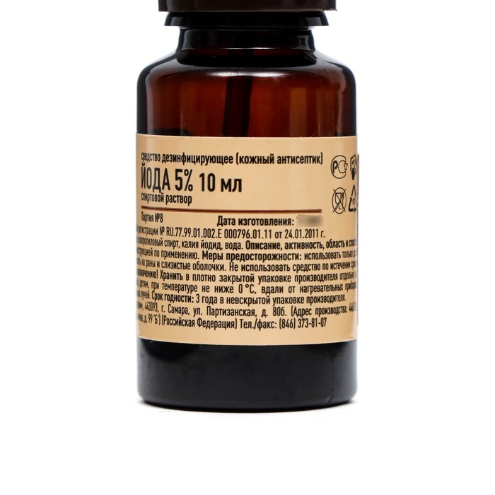 Йод 5% спиртовой раствор, с помазком, для местного и наружного применения – это антисептическое средство. Оно эффективно уничтожает патогенные микроорганизмы, такие как стрептококки, кишечная палочка, грибки и дрожжи. Также при длительном лечении в 80% случаев препарат оказывает губительное воздействие и на стафилококки. Лекарство хорошо проникает в слои кожи. Раствор йода показан при: ссадинах, порезах, ранах, микротравмах, инфекционных заболеваниях эпидермиса, обработке послеоперационных швов, обработке участков кожи перед хирургическим вмешательством.