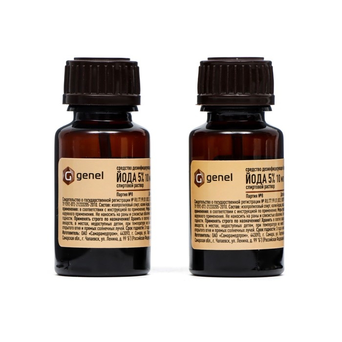 Йод 5% спиртовой раствор, с помазком, 2 шт. по 10 мл