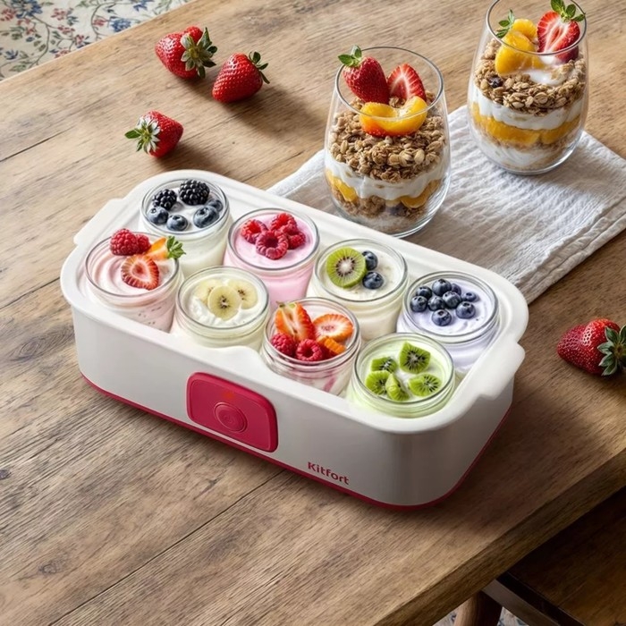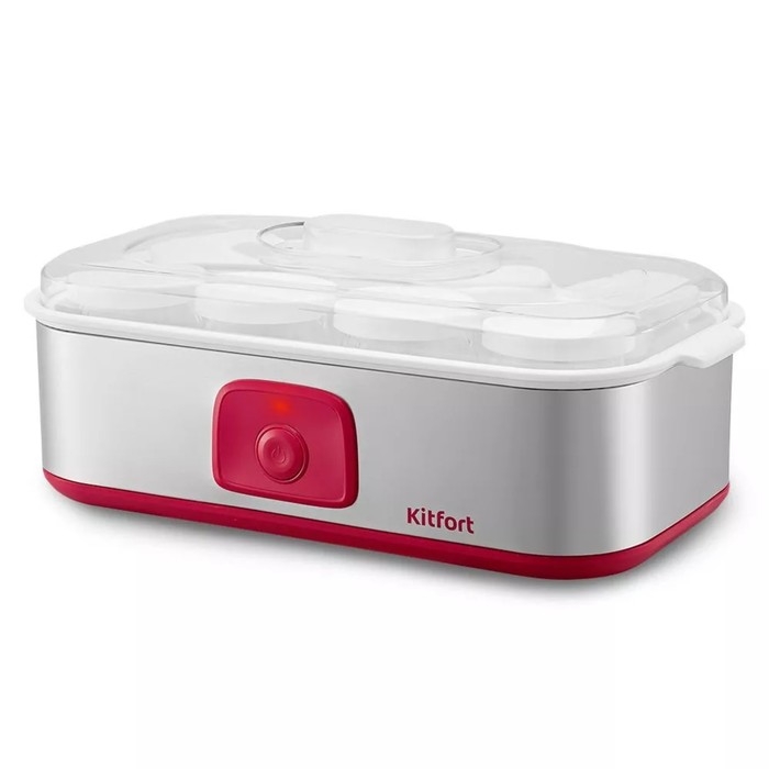 Йогуртница Kitfort КТ-6098, 20 Вт, 180 мл, 8 ёмкостей, стекло, серебристо-розовая