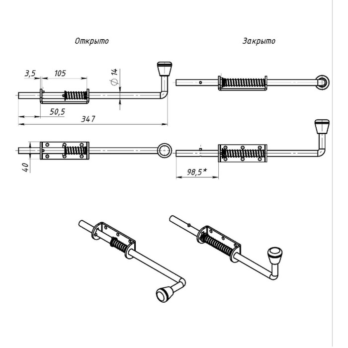 Задвижка дверная ЗД-13 цинк , в упаковке 10 шт .