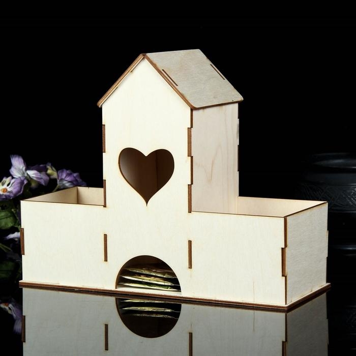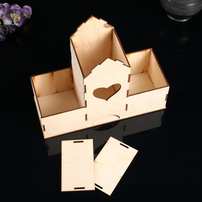Заготовка для декупажа "Чайный домик "Сердечко" с отделениями 27 х 11 х 22 см