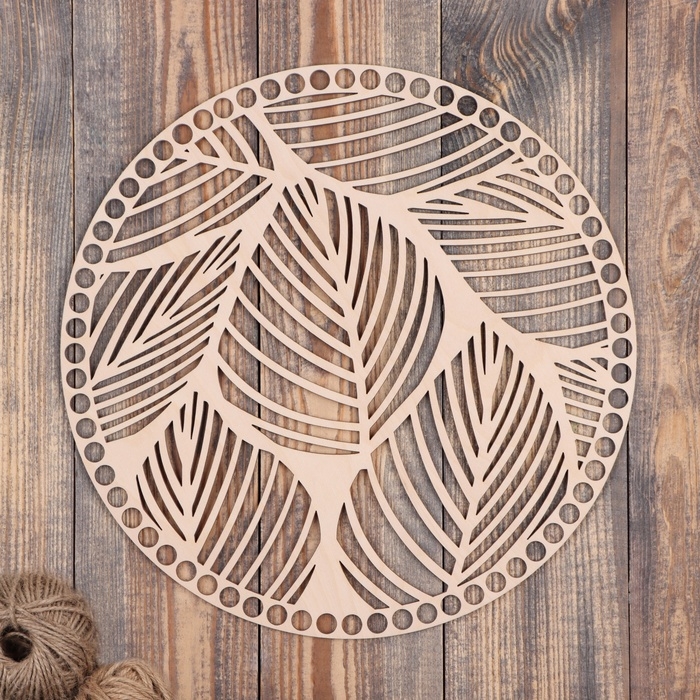 Заготовка для вязания круглая, Листья, фанера 29,5см, д 10 мм