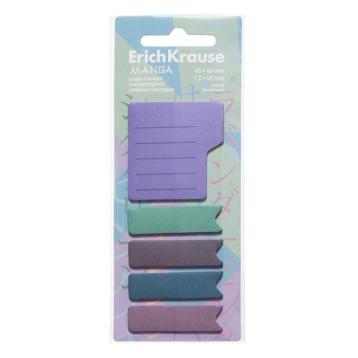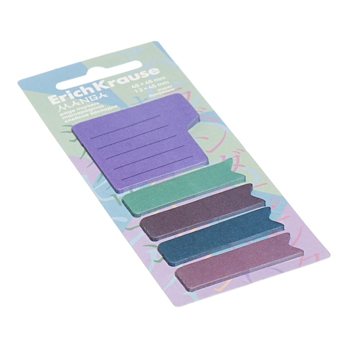 Закладки с клеевым краем бумажные 4х12х45 мм, 1х45х45 мм, ErichKrause "Manga", 100 листов, 5 цветов