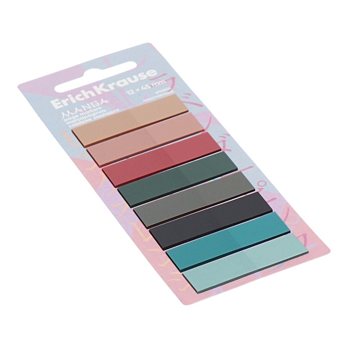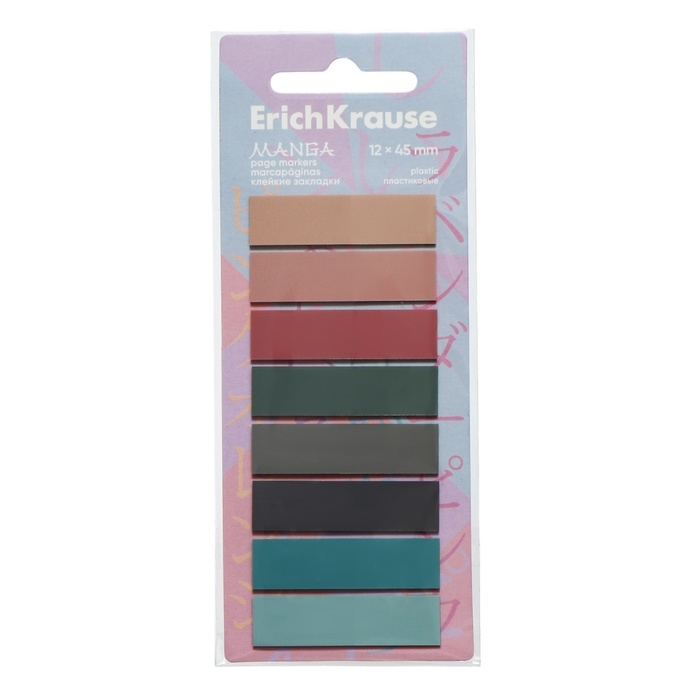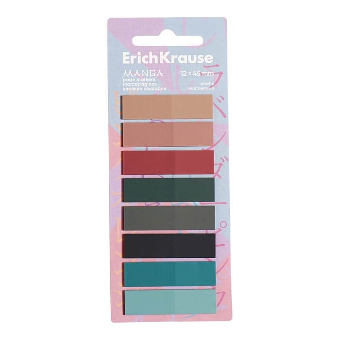 Закладки с клеевым краем пластиковые 12х45 мм, ErichKrause "Manga", 160 листов 8 цветов
