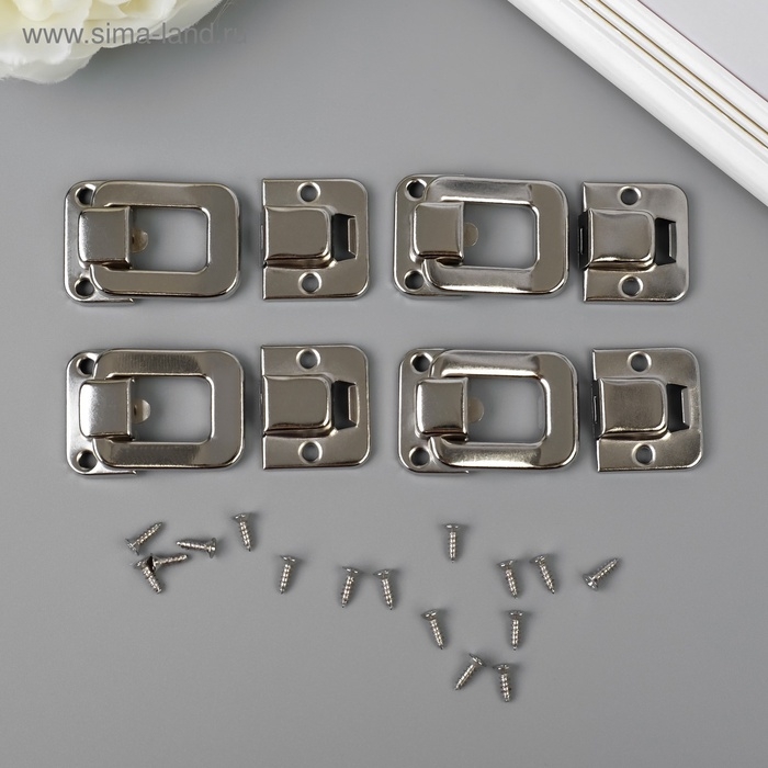 Замок металл для шкатулки хром + гвозд. набор 4 шт 4х2,7 см