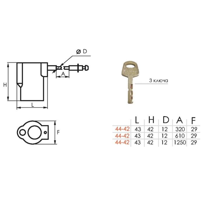 Замок навесной 1260 АМ, с тросом