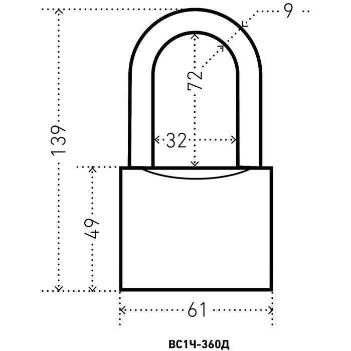 Замок навесной, тип 6, 6х60 мм, длинная дужка