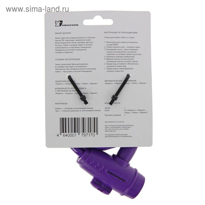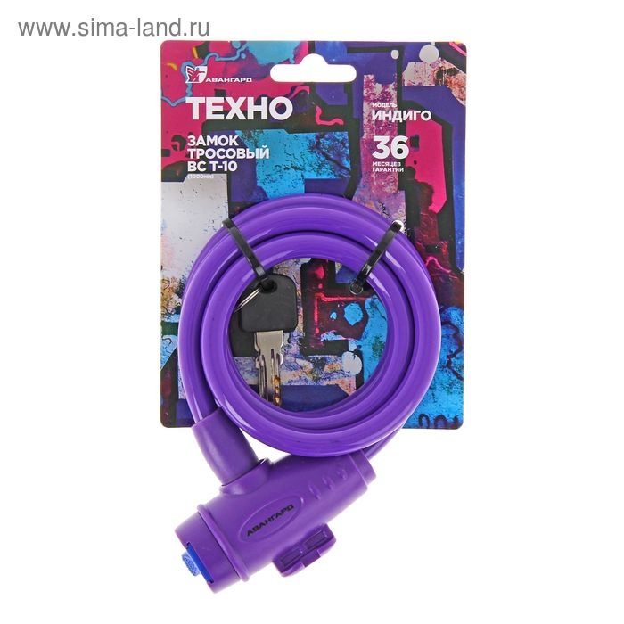 Замок навесной "АВАНГАРД" ВС-Т10 Техно Индиго, с тросом, 1000 мм