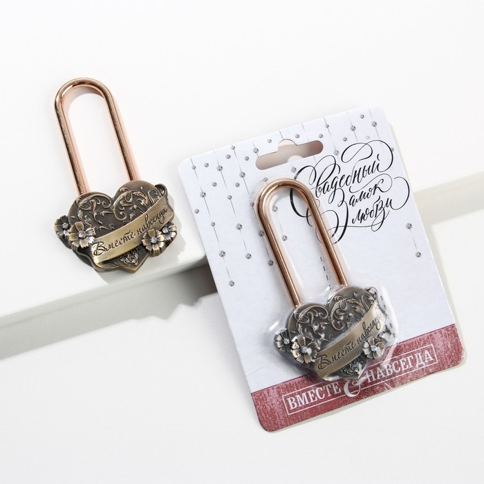 Замок для торжественной свадебной традиции - это символ любви. Навесной замок любви на свадьбе становится символом нерушимого союза, заключенного влюбленными в этот день. По традиции замок вешается на мост, загадывается желание о счастливой семейной жизни. Это делается для того, чтобы никто никогда не смог открыть этот замок и нарушить клятву, данную влюбленными. Свадебный замок можно повесить на мост по традиции или на дерево в специалных парках или аллеях молодожен, которые есть во многих городах. Традиция закрывать замок на свадьбу объединяет сердца мужа и жены навсегда. Свадебный декоративный замочек будет отлично смотреться на фотосессии и видео.