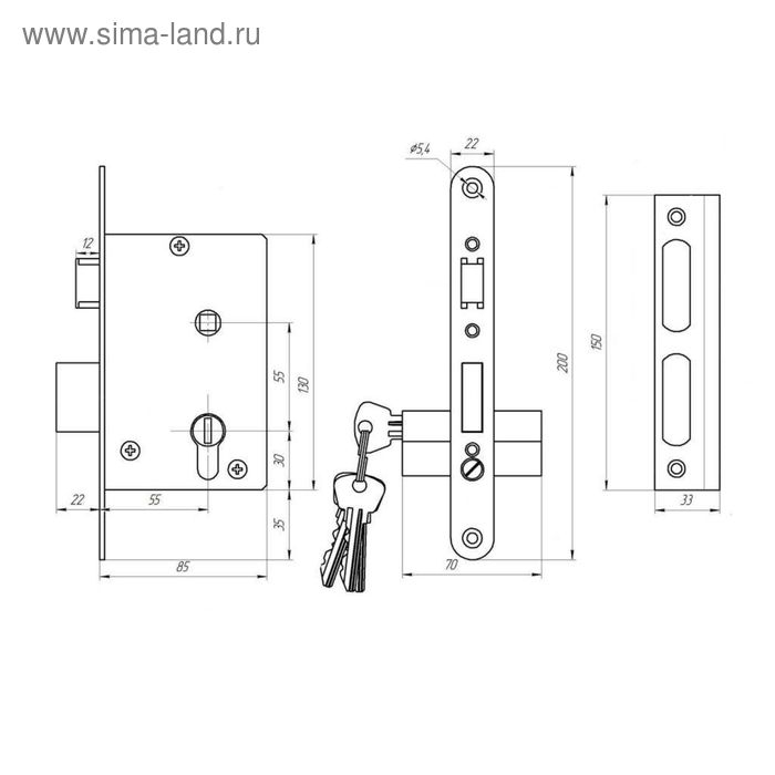 Замок врезной Зенит "Димитровград" ЗВ4-3.08, с ручкой