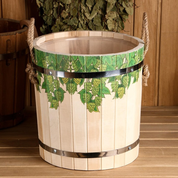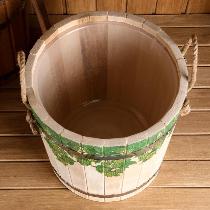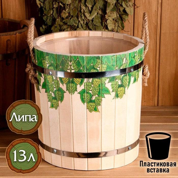 Запарник-ведро из липы, 10 л, с пластиковой вставкой, "Русские узоры"