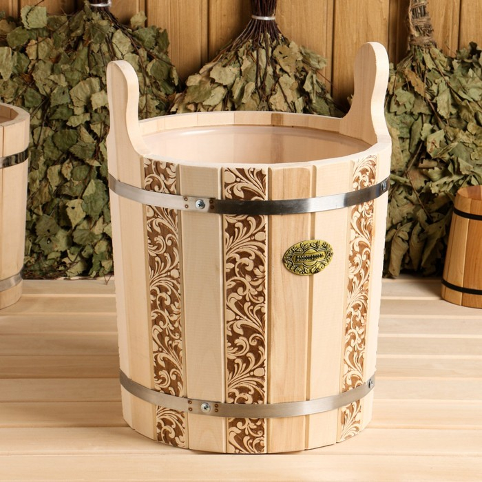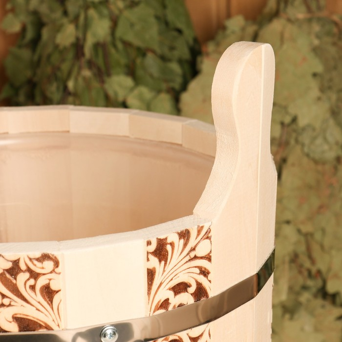 Запарник-ведро из липы, 10 л, с пластиковой вставкой, "Русские узоры"