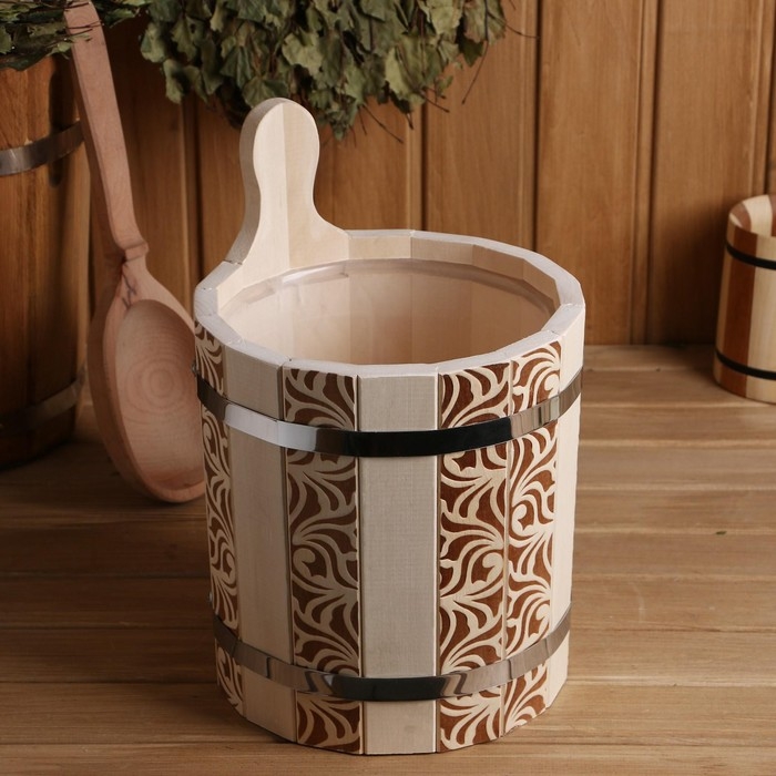 Запарник-ведро из липы, 10 л, с пластиковой вставкой, "Русские узоры"