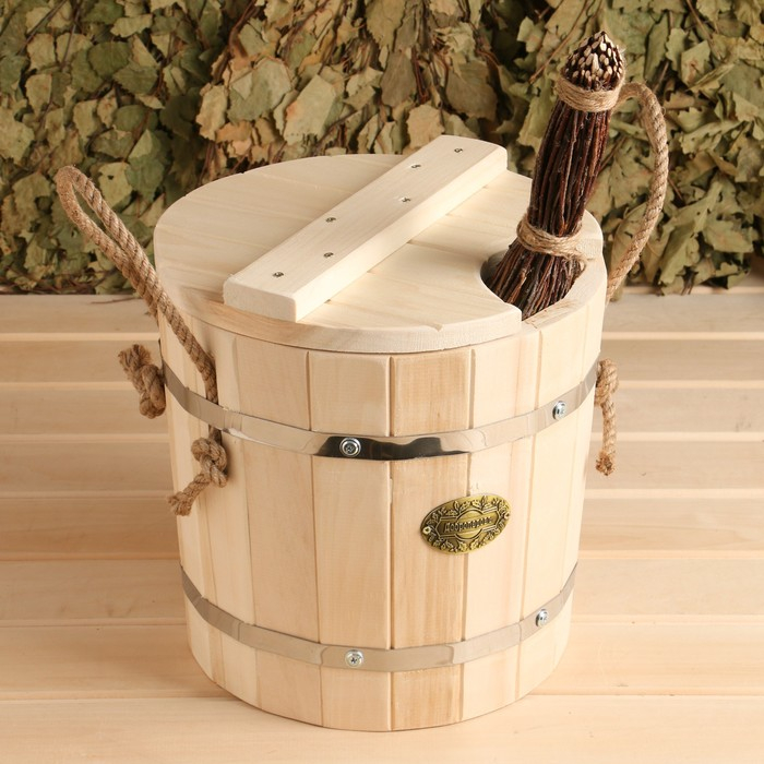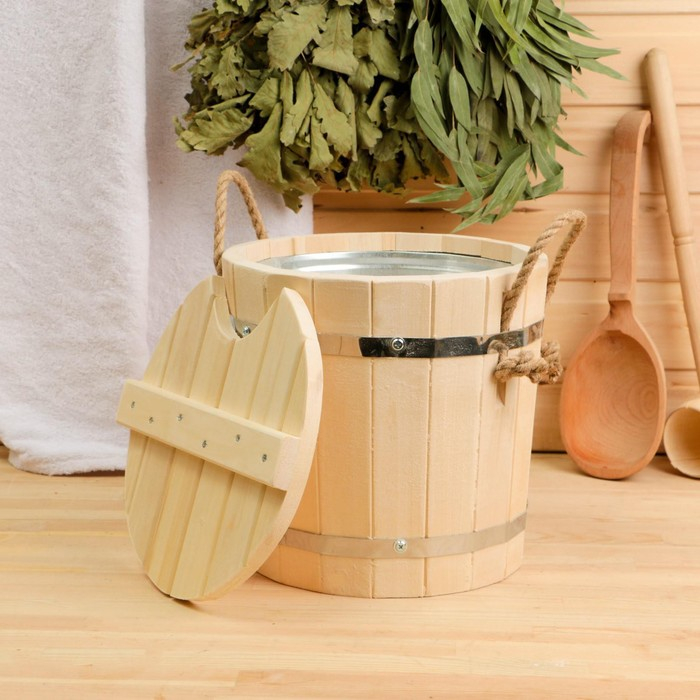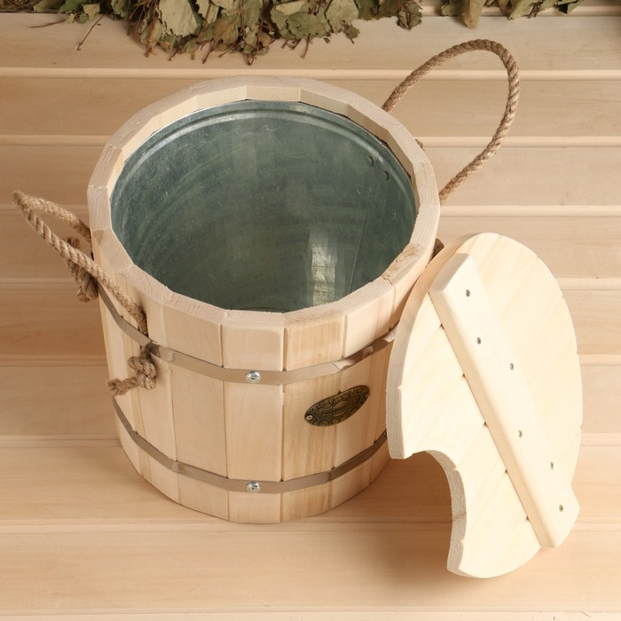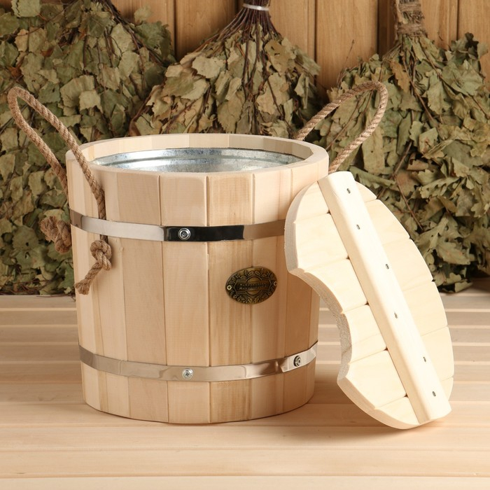 Запарник из липы, 7л, оцинкованная вставка, с крышкой, "Добропаровъ"