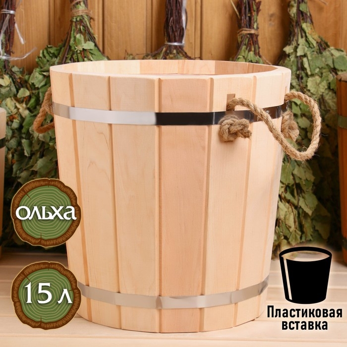 Запарник из ольхи 15 л, с пластиковой вставкой