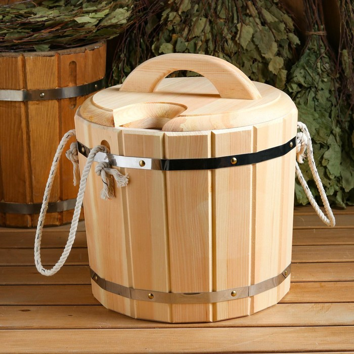 Запарник кедровый, 14 л , пластиковая вставка, с крышкой