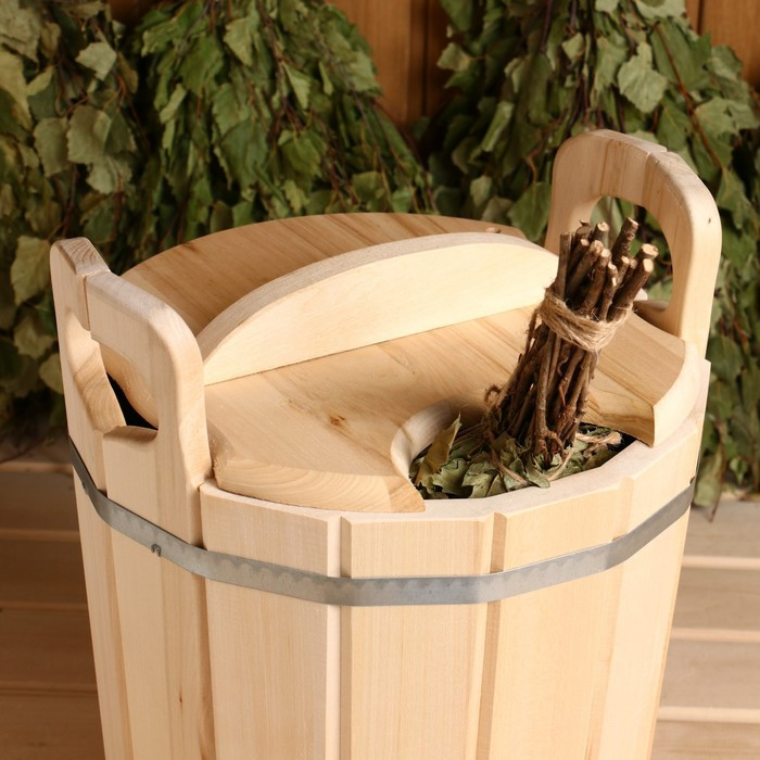 Запарник-ведро из липы, 12 л, нержавеющая вставка, с крышкой, "Добропаровъ"