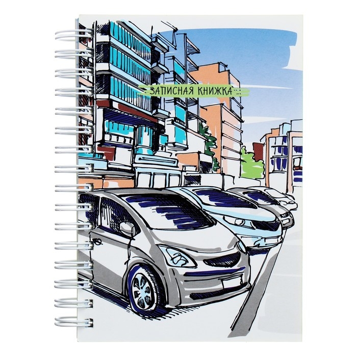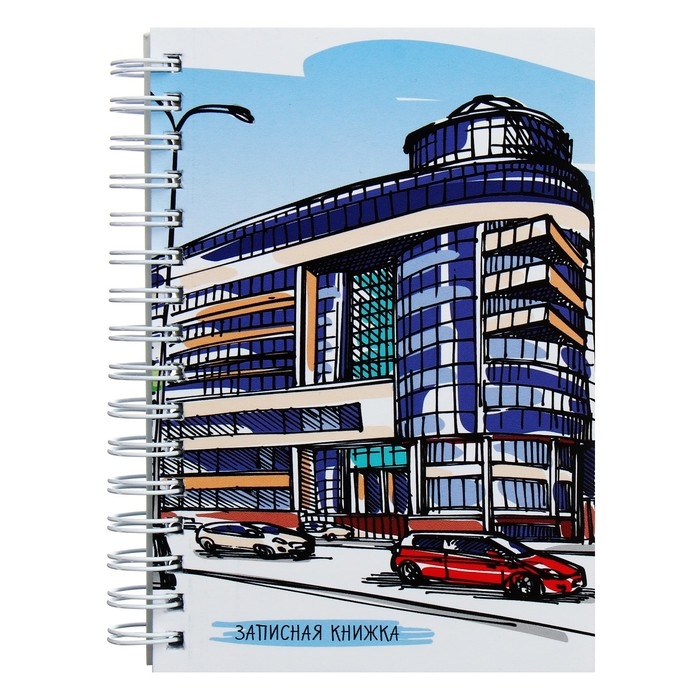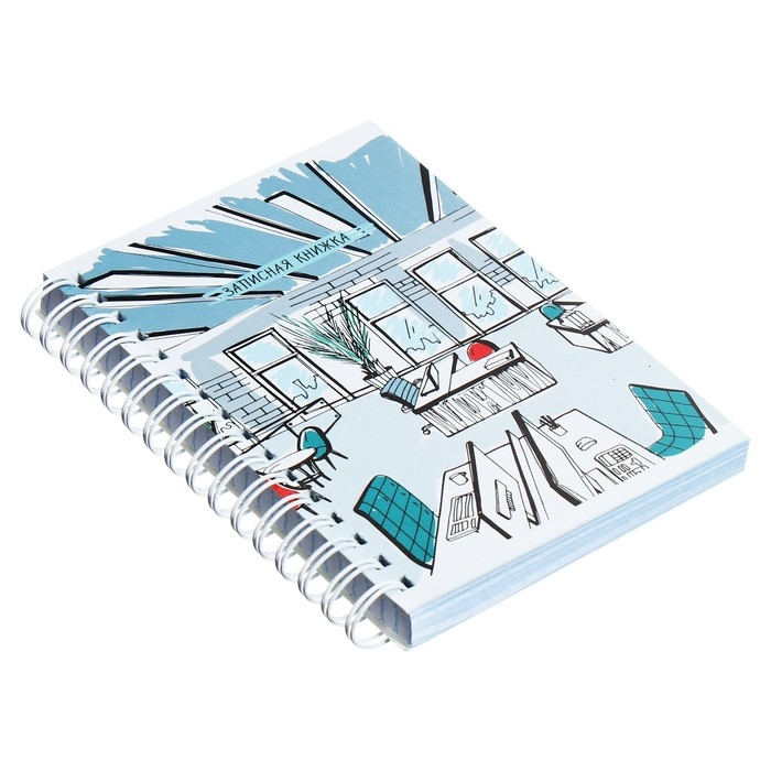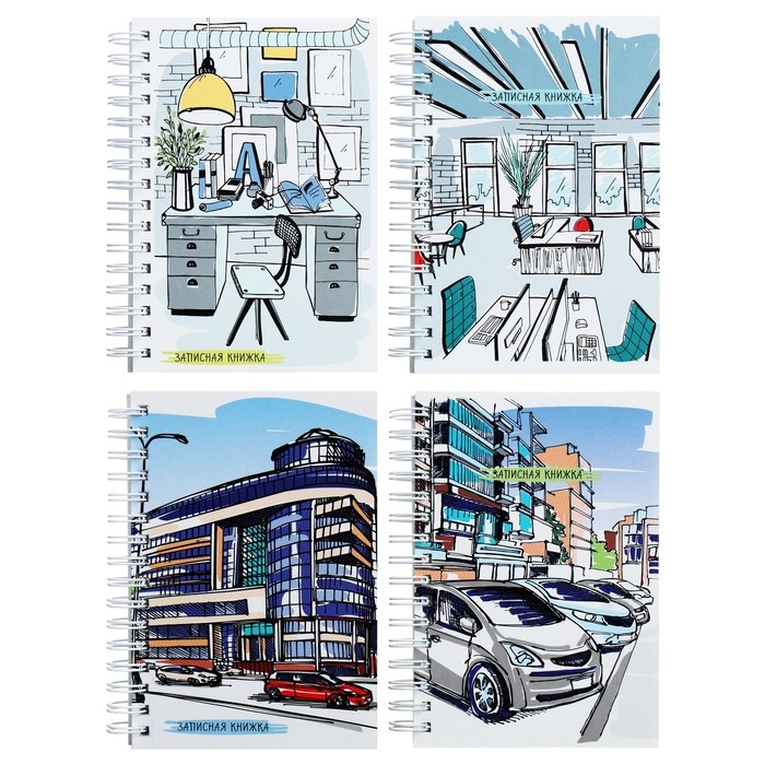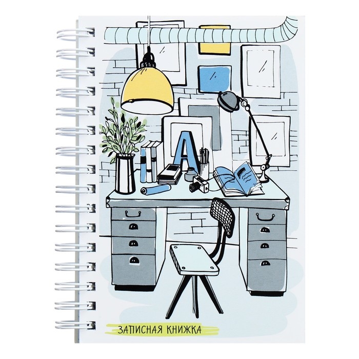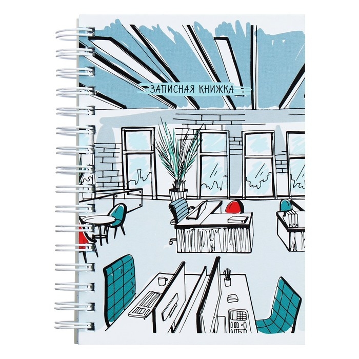 Записная книжка А6, 120 листов в клетку на гребне "Новый офис", обложка мелованный картон, МИКС