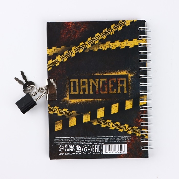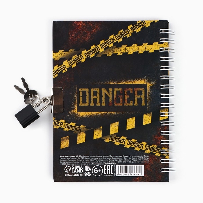 Записная книжка на замочке А6, 50 л «Секретные материалы»