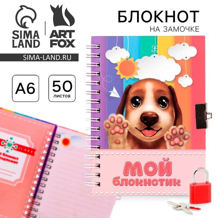 Записная книжка на замочке «Мой Записная книжкаик», А6, 50 листов.