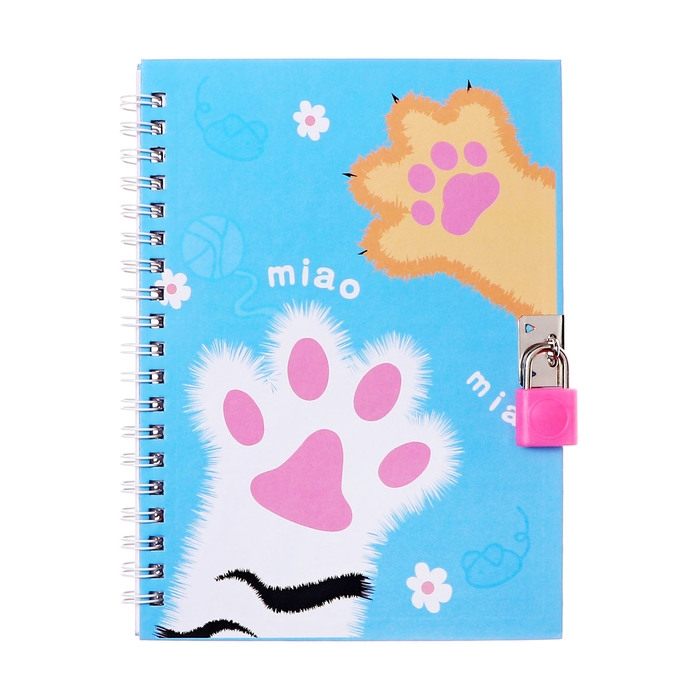 Записная книжка подарочная, 45 листов, линия, на замке, на гребне, Лапки (17,8х13см)