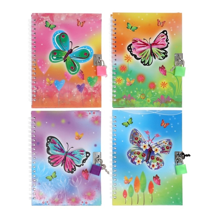 Записная книжка подарочная на замочке, А6+, 50 листов, линия, "Бабочка", МИКС