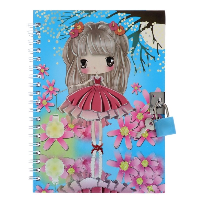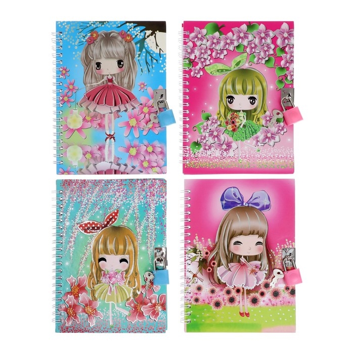 Записная книжка подарочная на замочке, А6+, 50 листов, линия, "Милашка", МИКС