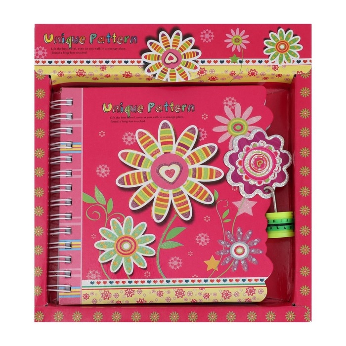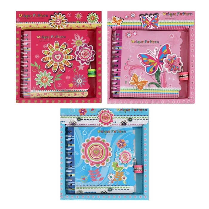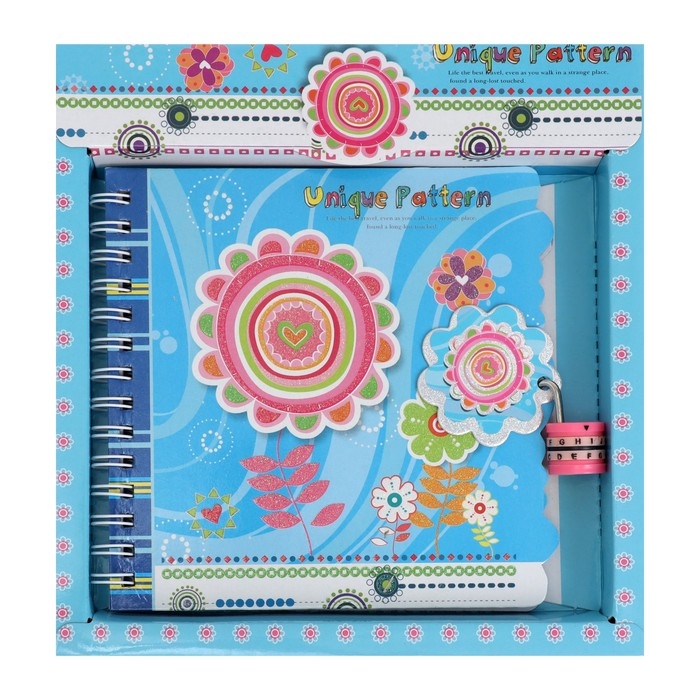 Записная книжка в подарочной коробке, на замочке, А6, 50 листов, линия "Цветы", МИКС
