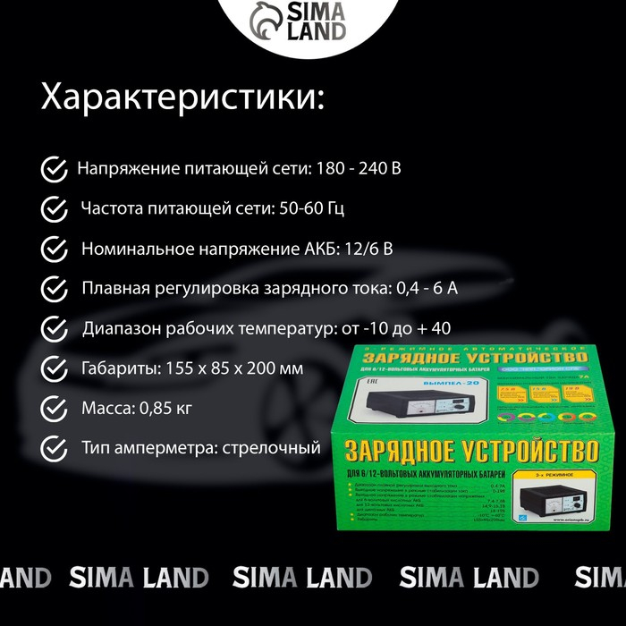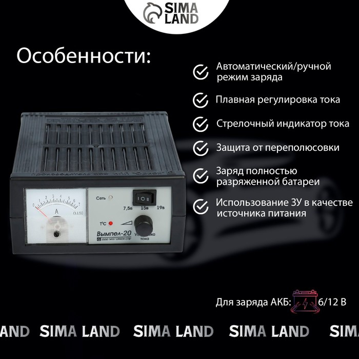 Зарядное устройство АКБ "Вымпел-20", 0.6-7 А, 6/12 В