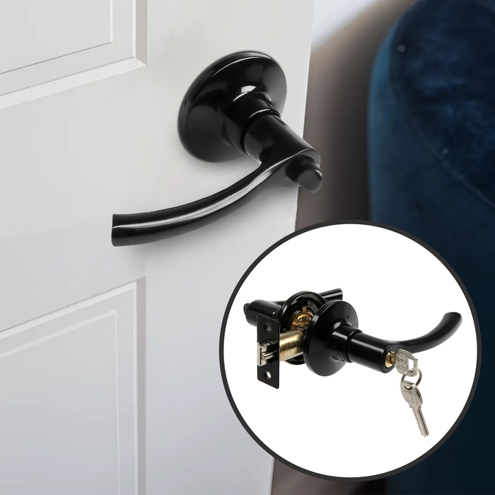 Защелка (мод.3186), межкомнатная, фиксатор, 3 ключа, цвет глянцевый черный