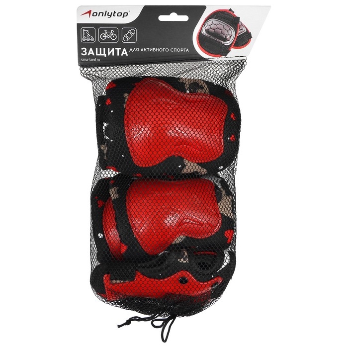 Защита роликовая детская ONLYTOP: наколенники, налокотники, защита запястья, р. M, цвет красный