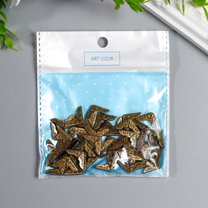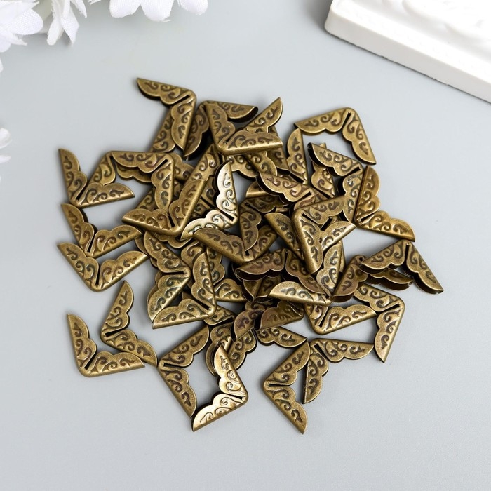 Защитный уголок для альбома металл "Завитки" набор 50 шт бронза 1,4х1,4 см