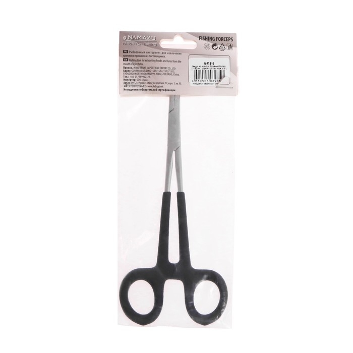 Зажим-корнцанг рыболовный Namazu – необходимый инструмент на рыбалке, который всегда должен быть под рукой. Выполнен из нержавеющей стали с обрезиненными ручками для лучшего хвата. Инструмент предназначен для извлечения крючков или приманки из пасти зубастого хищника.
