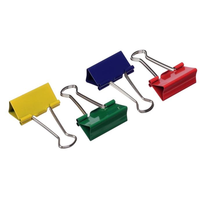 Набор зажимов для бумаг, 32 мм, цветные, 24 штуки, 4 цвета, МИКС