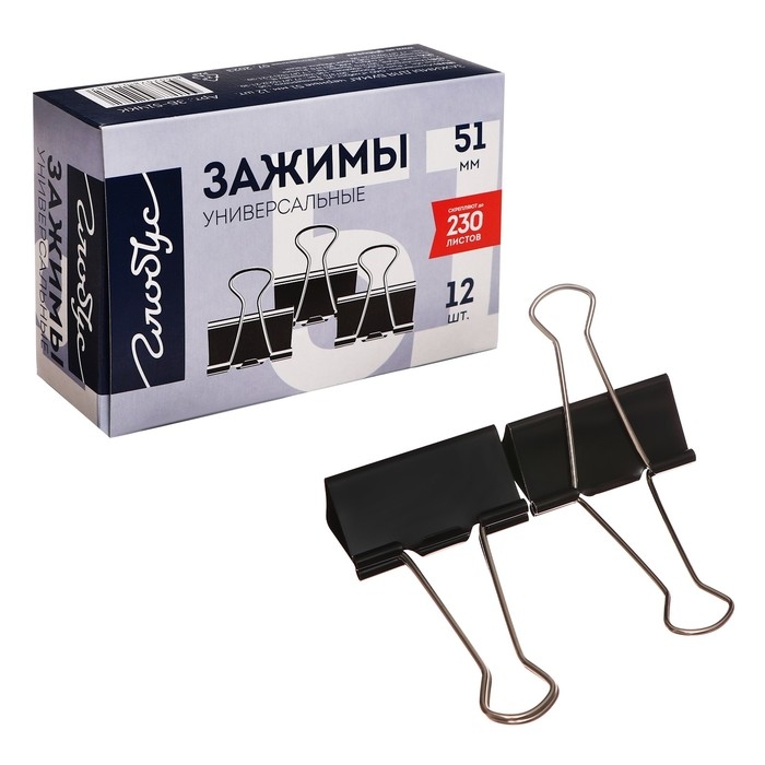 Зажимы для бумаг GLOBUS, 12 штук, 51 мм, чёрные