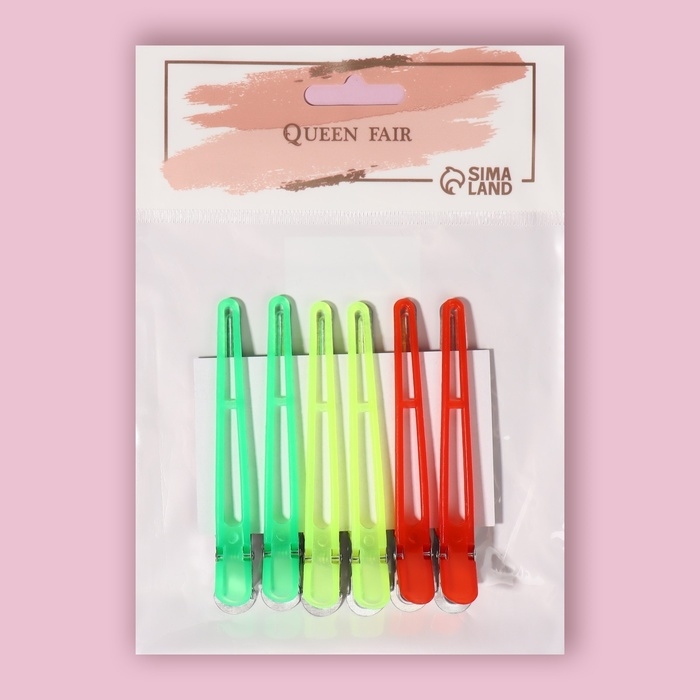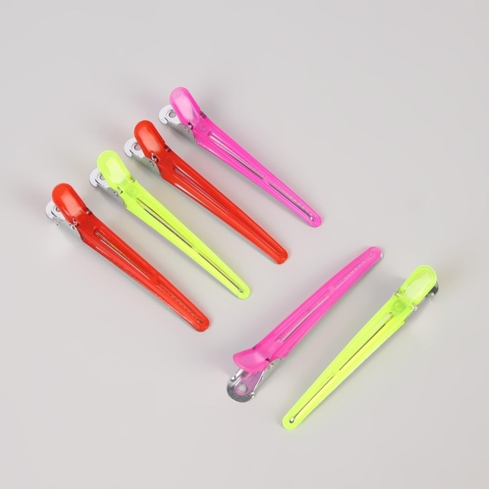 Зажимы для волос, набор - 6 шт, 9,5 см, цвет МИКС